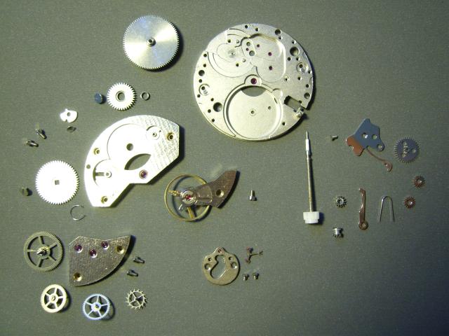 Das Kaliber wird komplett in seine Einzelteile zerlegt und auf
